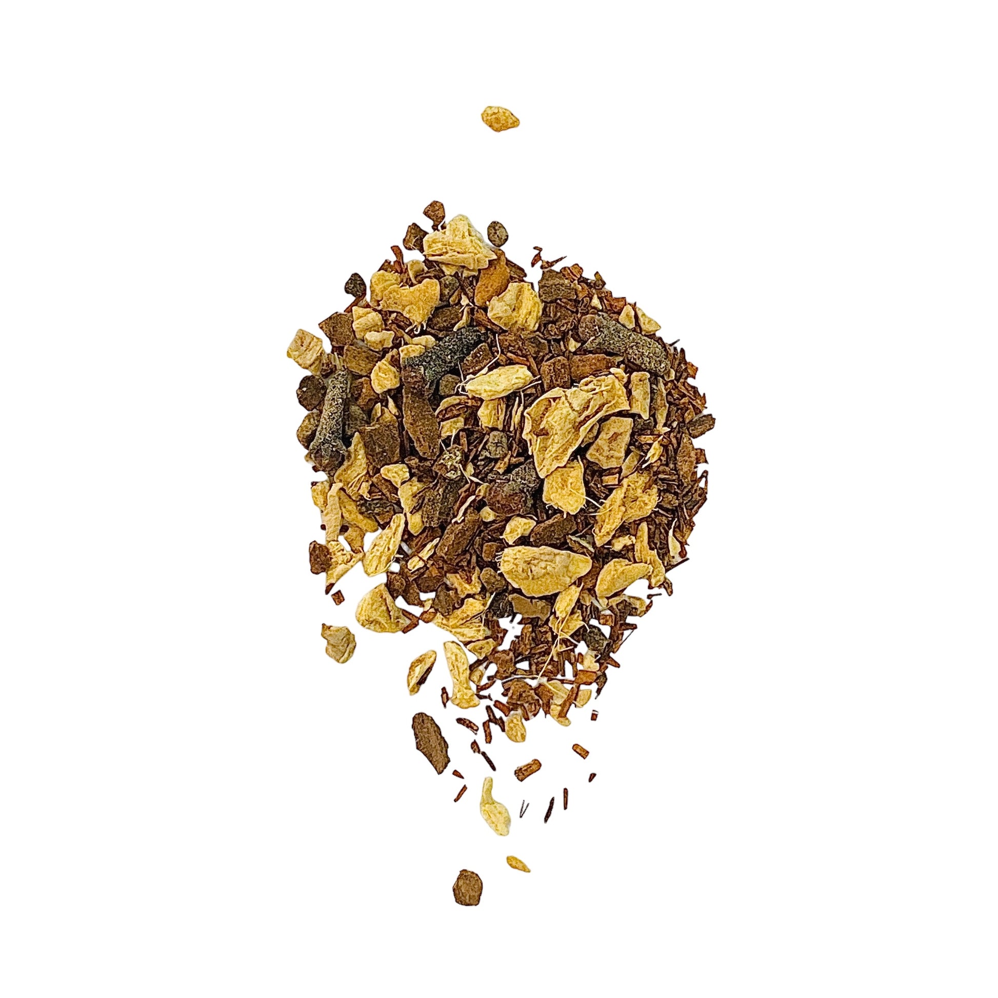 Unveil the captivating essence of Fire Chai Tea, an exquisite blend that ignites the senses with its organic, caffeine-free infusion. Specially curated for chai lovers, our Fire Chai offers a unique twist with a smoother taste profile compared to traditional black tea-based chais. Delight in the rich aroma as the loose tea, nestled in our resealable kraft bag, releases its fragrant embrace. To brew, simply measure out a teaspoon of the loose-leaf tea into a strainer ball or an empty tea bag, then steep in 8 oz of boiling hot water. Stir gently, allowing the tea to steep for 5-15 minutes, ensuring a perfect balance of flavor without bitterness. Add honey and sugar to your preference, and savor the warm, comforting notes of Fire Chai Tea, ideal for cozy evenings or tranquil moments of reflection. With each sip, experience the artisanal touch of our family-owned commitment to organic, natural goodness.